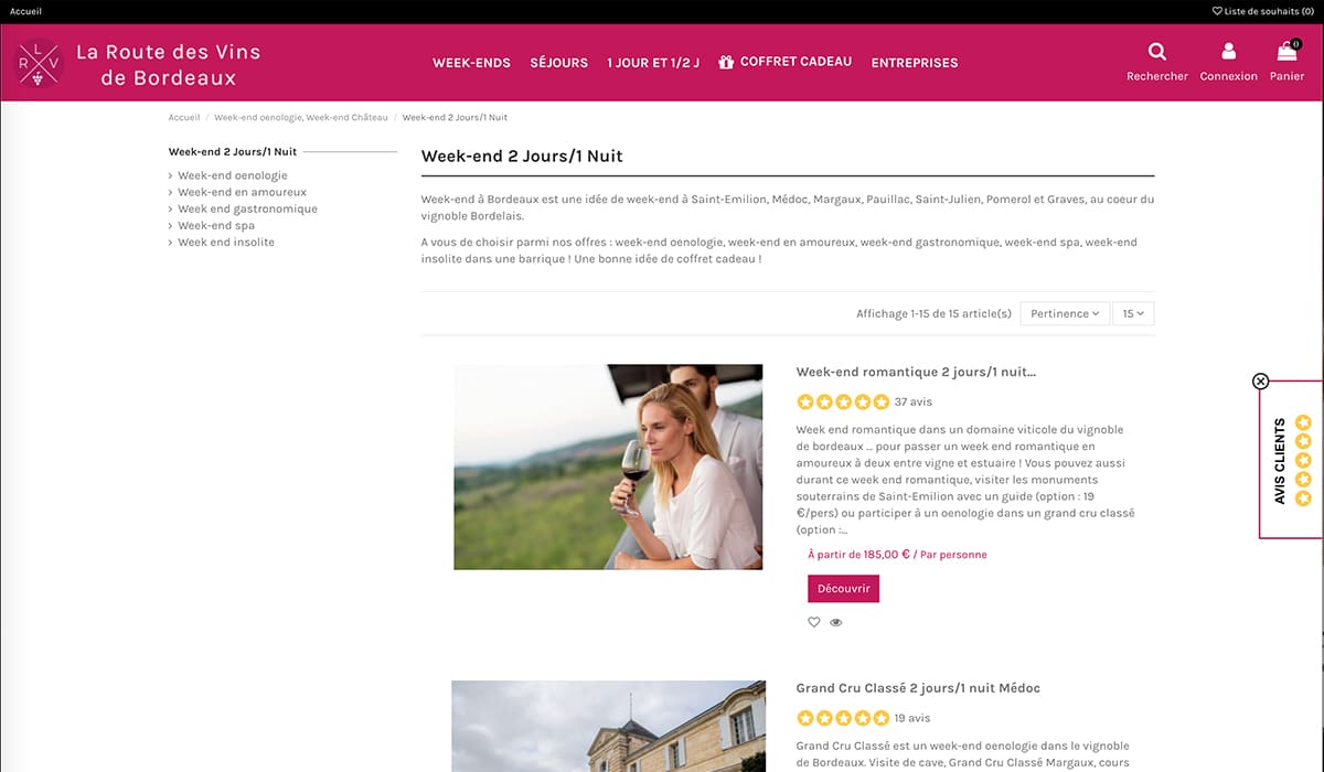 Caroline m'a fait confiance pour la refonte de son site web Route Des Vins. Elle est spécialisée dans l'organisation de séjour dans des châteaux Bordelais.